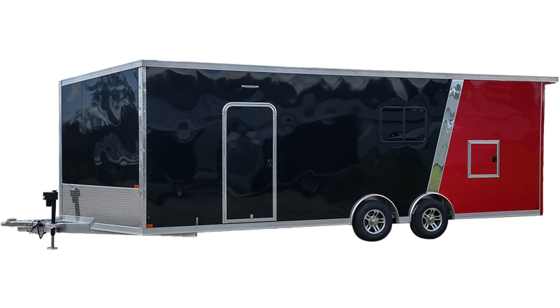 Our Premier Enclosed Car Trailer Package for optimum fit and finish. The N Series is top of the line with our deep 4 foot v-nose and utilizing all of the best quality components. Our Car Haulers are built with box 2″ x 6″ axle carriers, along with a completely upgraded frame underneath, to withstand the load of an automobile. Standard with a rear angled beavertail for lower ground clearance and easier approach for those close to the ground racecars or showcars!